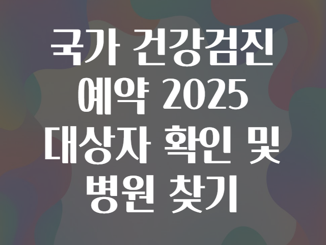 국가 건강검진 예약 2025 대상자 확인 및 병원 찾기
